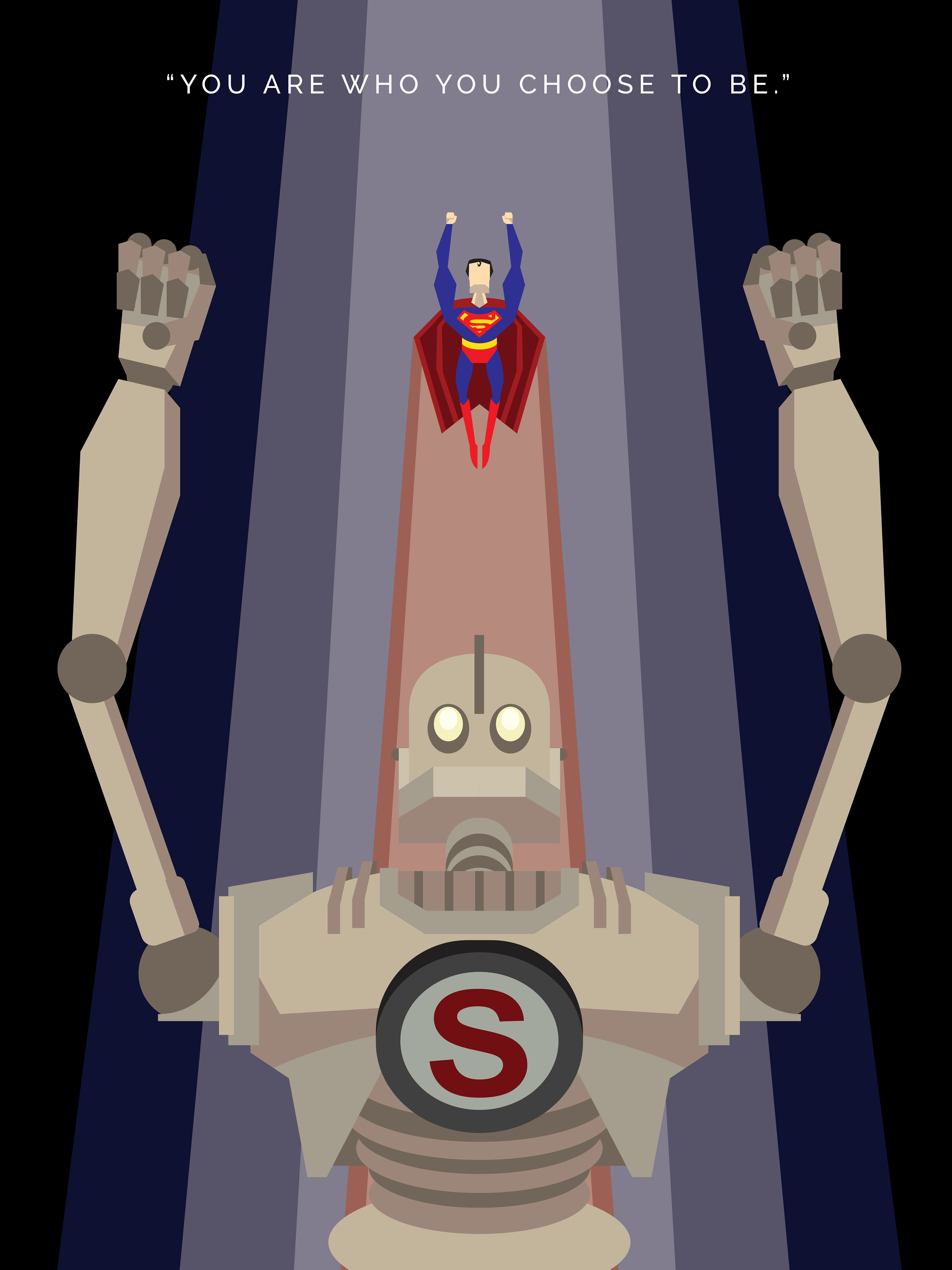 This was a personal project I did in 2024 to refine my skills in digital illustration. The 2 illustrations are fan art consisting of both Superman and the Iron Giant from the 1999 animated film of the same name (both owned by Warner Bros.). On the top side of both posters are quotes directly referenced toward both characters.